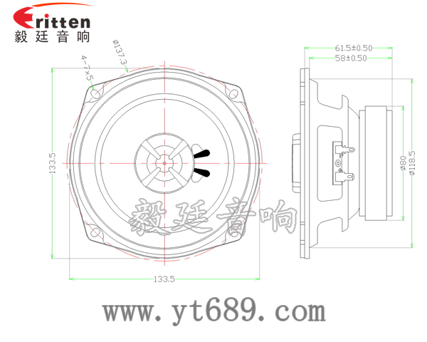 5.25寸苹果型铁盆架外磁全频喇叭,采用的是高性能钕铁硼,为达到精敏和超宽的频率响应,加厚宽了铁氧体,使音色灵敏度更加完美、圆润;