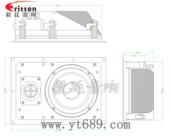 6.5寸方型外磁带网罩全频喇叭,采用的是精美的铜材质按压式接线端子,配红黑正负极,接线方便,音质细腻;