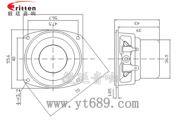 56mm异型铁盆架内磁全频喇叭,采用的是功率大,使音色完美,饱满。
