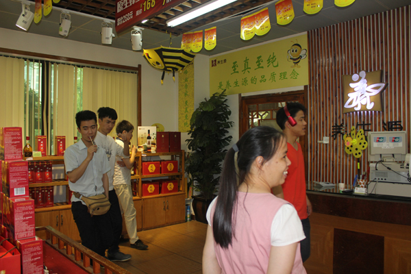 到了第一站摘桑果,我们体验了摘桑枣的乐趣,相传在两千年前,桑枣已是中国皇帝御用的补品,更有人称它为“健康宝贝”,遗憾的是桑枣的成熟期只有短短的一个月,为了弥补这个遗憾,桑果园研发了桑果汁、桑果酒,桑叶茶叶等,还回归了“桑基鱼塘”种植养殖模式,一年四季都能吃到喝到关于桑的产品。满手都是乌红色的,大家都不怕弄脏双手,而是非常享受的。↓
