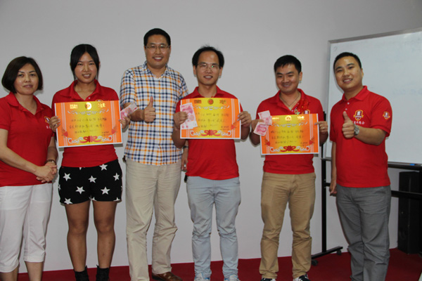 到了第二环节了,就是评比流量王,询盘王,成交王三项,以上三家公司得到了奖状和奖金,是不是特有成就感?值得我们争取的;