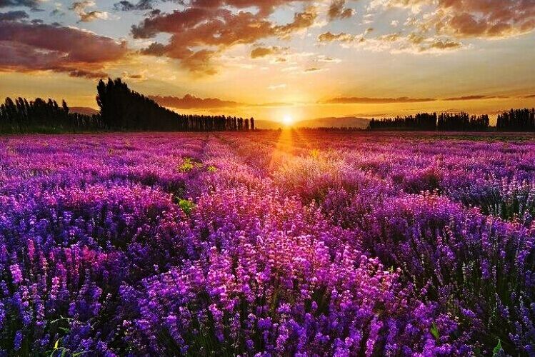 普罗旺斯暮色:夕阳与红霞漫天散开,光影糅合大片花海,只能用震撼形容了!银色、紫色、金色、绿色、红色层次分明,胜似天上人间!