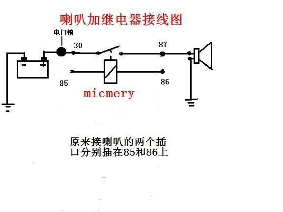 装用单只螺旋形电喇叭或两只盆形喇叭时,电喇叭总电流较小(<8A),一般直接由方向盘上喇叭按钮操控。当装用两只螺旋形电喇叭时,电喇叭耗用电流较大(>15-20A),用按钮直接操控,易烧蚀按钮触点。为避免这个缺陷,可采用喇叭继电器操控双音电喇叭。