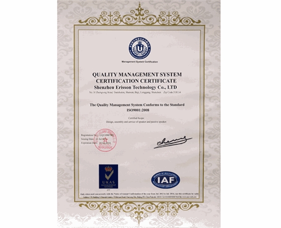 喇叭厂ISO9001认证