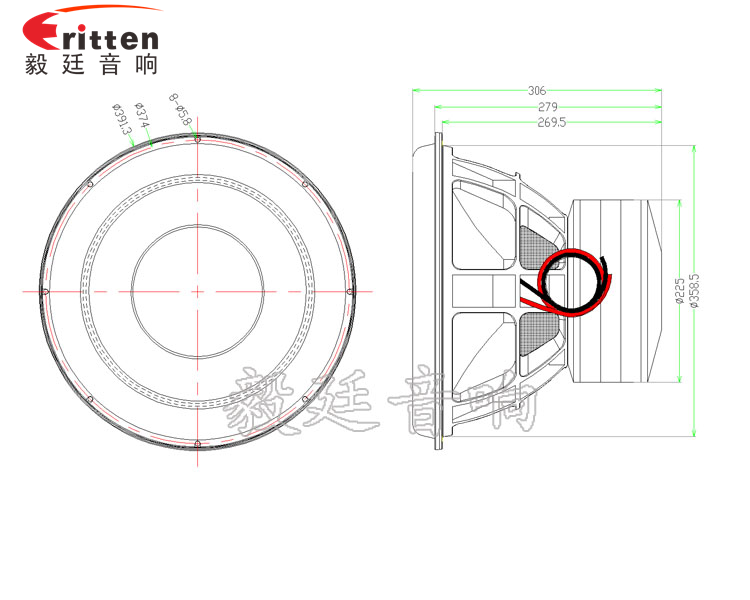 | 采用了加厚橡胶边纸盆,76芯铜线音圈,进口的纸浆热压成型的纸盆,特殊的胶水表面处理,防潮效果好,质感强;