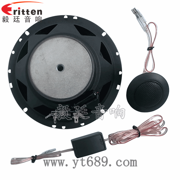 6.5寸圆形铁盆架外磁全频扬声器,采用的是高性能,高密度铁氧体,磁性强,动力足;