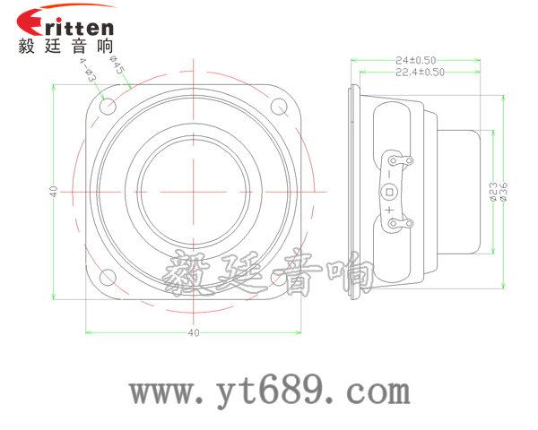 此款频率范围为274HZ~20KHz,超宽的音域,音质悦耳、清晰,也可以用于40mm3瓦16芯故事机全频喇叭上,用途广泛,音质完美,听觉享受毅廷喇叭厂家工程师精心研发、制造出美美的小型的扬声器。