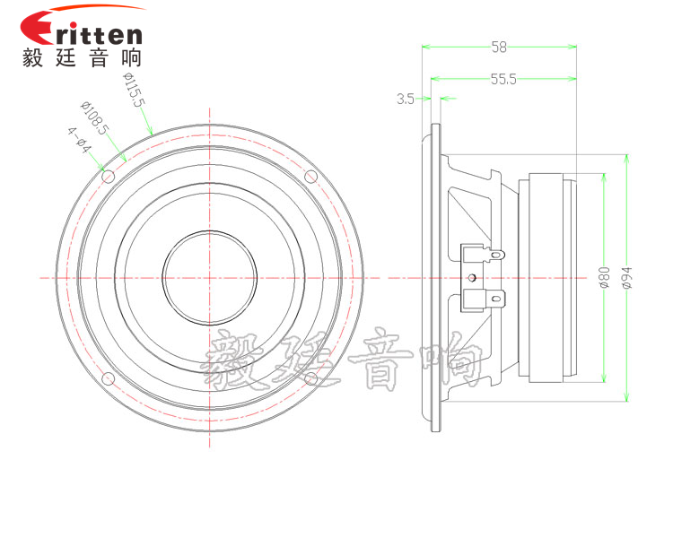 此款优异用于4寸HIFI音箱重低音喇叭,蓝牙音箱,汽车音响,音质悦耳、清晰,是众人首选。