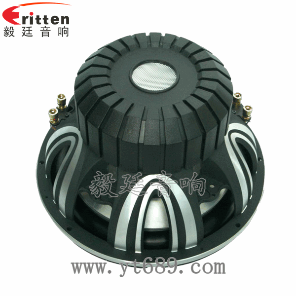 12寸圆形重低音喇叭,采用了高纯度的铝盆架,加强加宽压铸磨砂,承载着大型磁路和振动系统,保证了大功率工作时的稳定性;