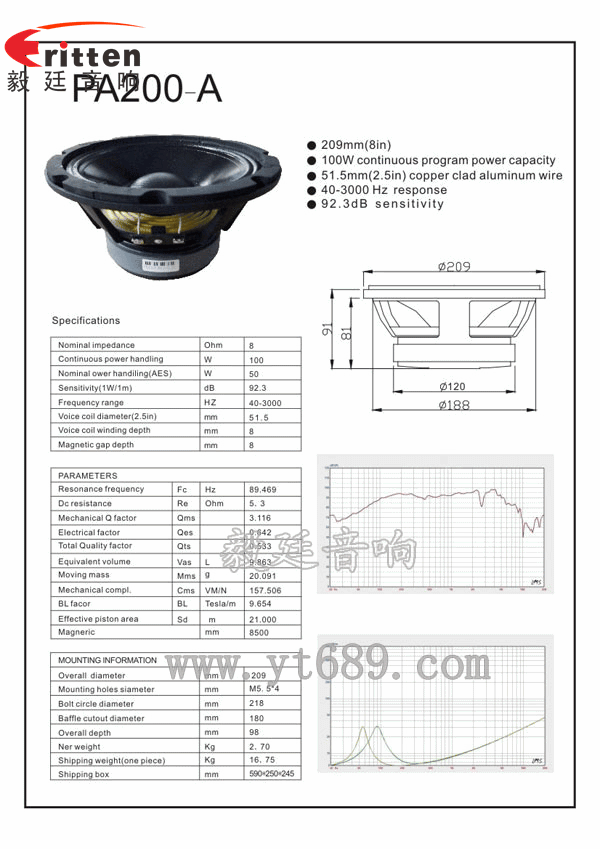 东莞市毅廷音响科技有限公司严格贯彻,此款8寸50W汽车音响重低音喇叭,舞台音箱,额定功率为50W,最大峰值100W,音域40Hz~3KHz,超重低音炮,下潜力深。