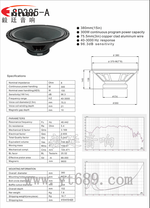此款15寸75芯150W重低音喇叭,优异用于舞台音箱喇叭的额定功率为150W,音域40Hz~3KHz,超重低音炮,下潜力深,也可用于KTV音箱、广场音箱上,用途广泛。