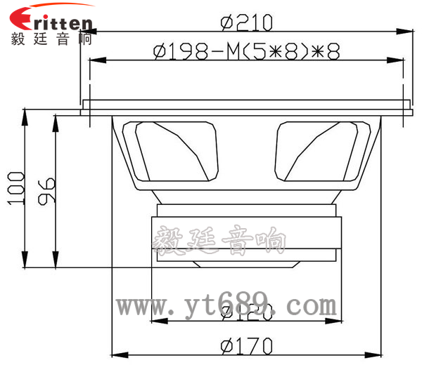 东莞市毅廷音响科技有限公司严格贯彻,此款8寸舞台低音喇叭,额定功率为75W,最大峰值150W,音域76Hz~7KHz,超重低音炮,下潜力深。