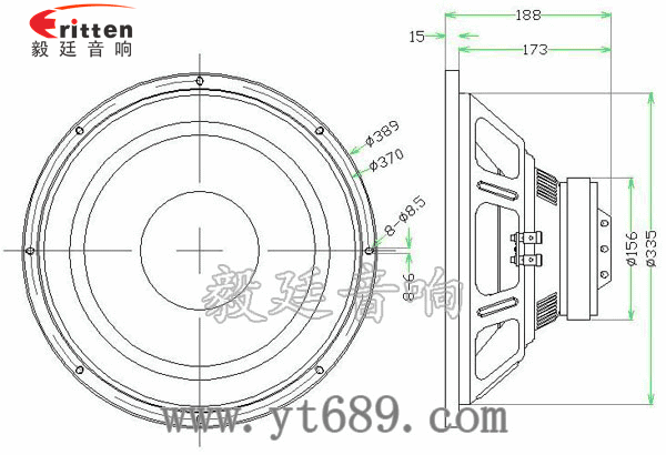 15寸圆形铝盆架重低音喇叭,采用了高性能铁氧体磁钢,具有磁性强,动力足,低频极为震撼,下潜度深。