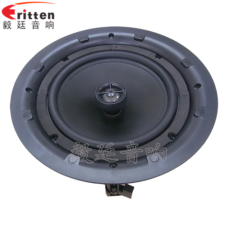 这款天花喇叭的外观防尘罩,用的是高密度金属网罩进过环保烤漆工艺,手感平滑,不褪色、不生锈、不氧化、超窄边有圆形和正方形两种防尘罩形状,带八个超强磁吸铁,可吸性强,外观大气、精美,是毅廷喇叭工程师精心研发的一款超完美的8寸天花吸顶式喇叭。