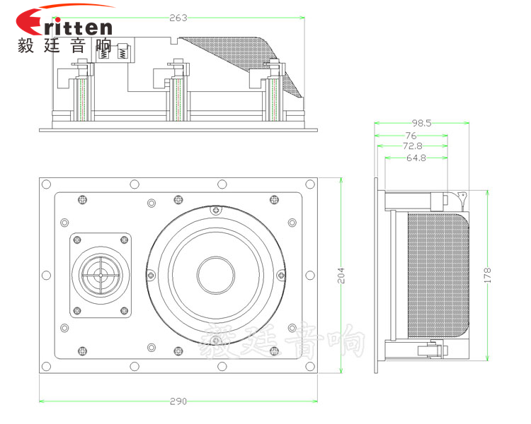 | 采用的是25芯和20芯丝膜高音喇叭,增加了整个挂壁音箱喇叭的频宽盆,使音色更加饱满;