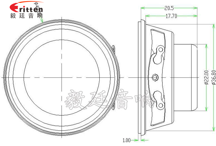 40mm圆形铁盆架内磁全频喇叭,采用的是高性能稀土高强磁,音色饱满、质感强;