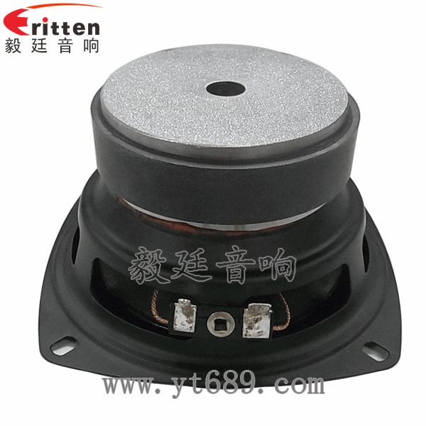 4寸苹果型铁盆架外磁中低音喇叭,采用了高性能铁氧体,磁场密度高,磁性强,有利于声音的爆发力;