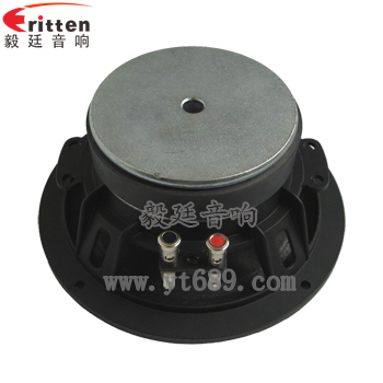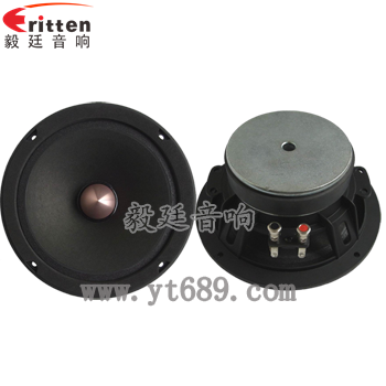 6.5寸圆形塑料盆架外磁中低音喇叭,高级铝材整体铸造,再经精密的车削,最后涂覆黑色烤漆,精巧细致的设计,使得盆架格外强韧稳固,铜材质镀金按压式接线端子,配上红黑正负极之分,接线方便。